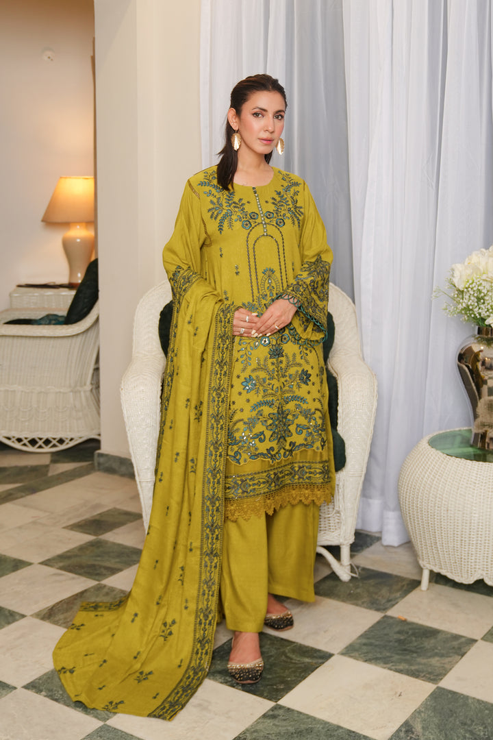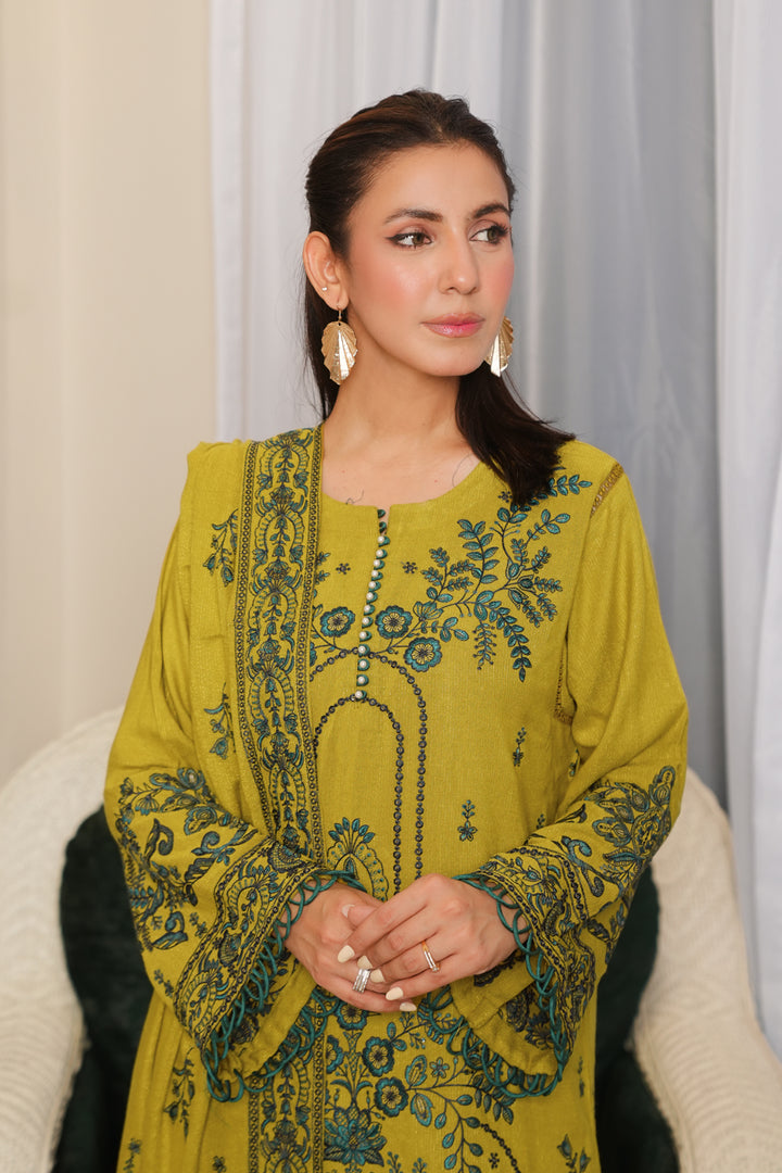 Description: Embroidered Fancy Peach Leather With Embroidered Wool Shawl