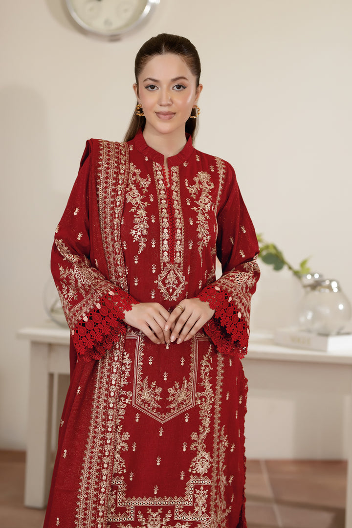 Description: Embroidered Fancy Peach Leather With Embroidered Wool Shawl