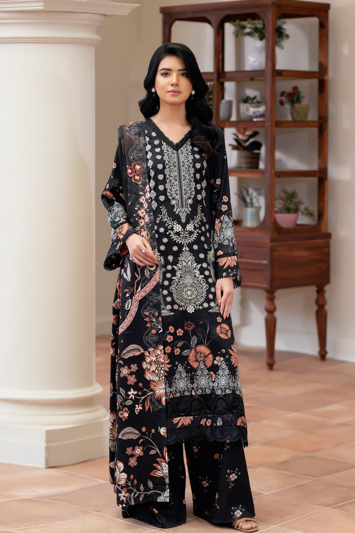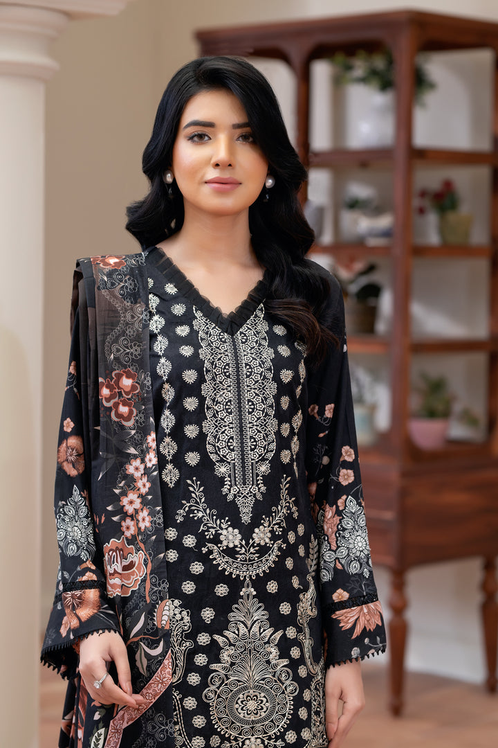 Description: Embroidered Dobby Stapple With Printed Shawl + Printed Trousers