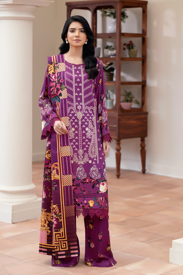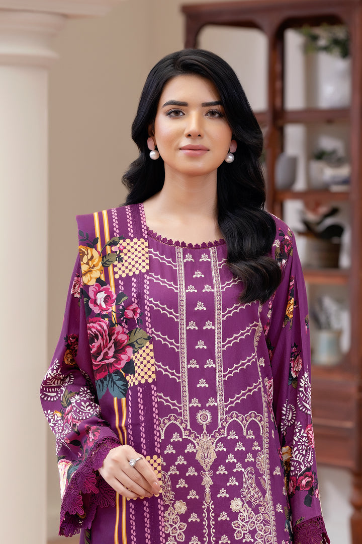 Description: Embroidered Dobby Stapple With Printed Shawl + Printed Trousers