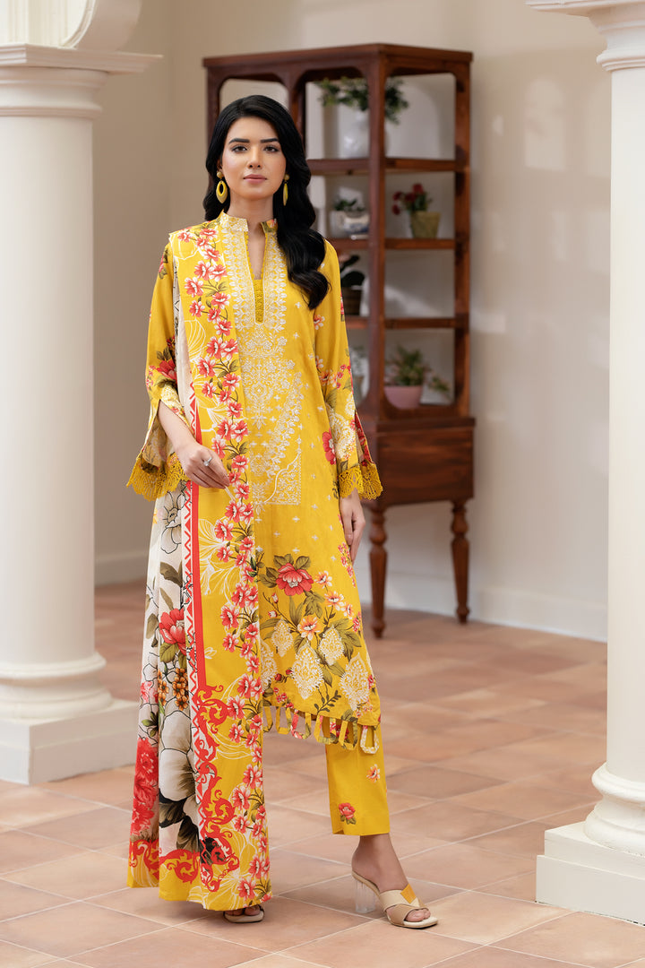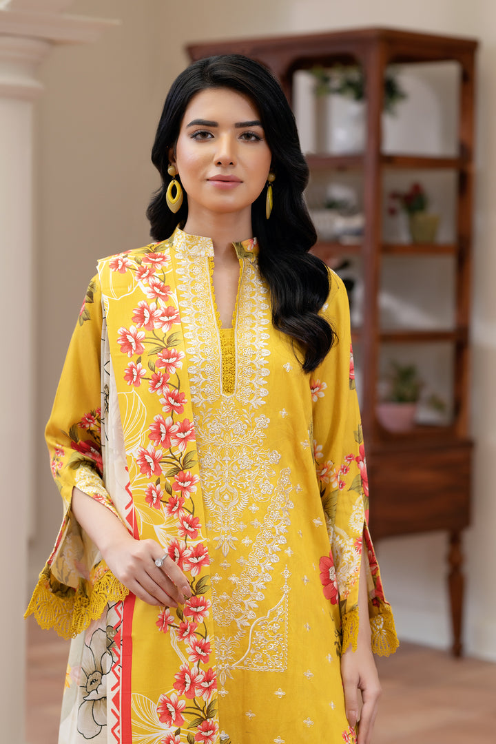 Description: Embroidered Dobby Stapple With Printed Shawl + Printed Trousers