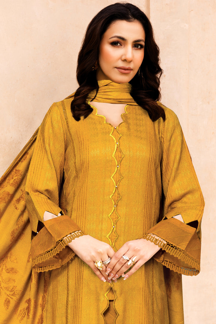 Description: Fancy Jacquard Peach Leather Shirt With Exolusive Velvet Jacquard Zari Peach Shawl