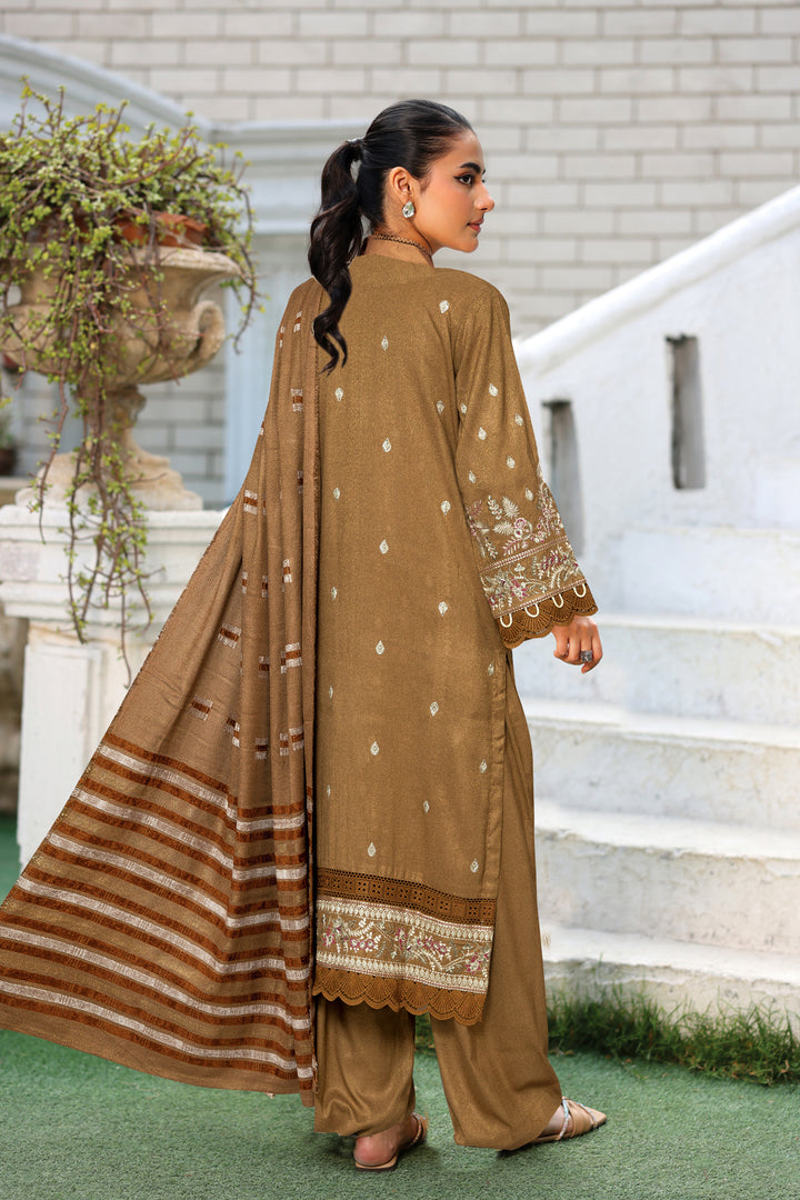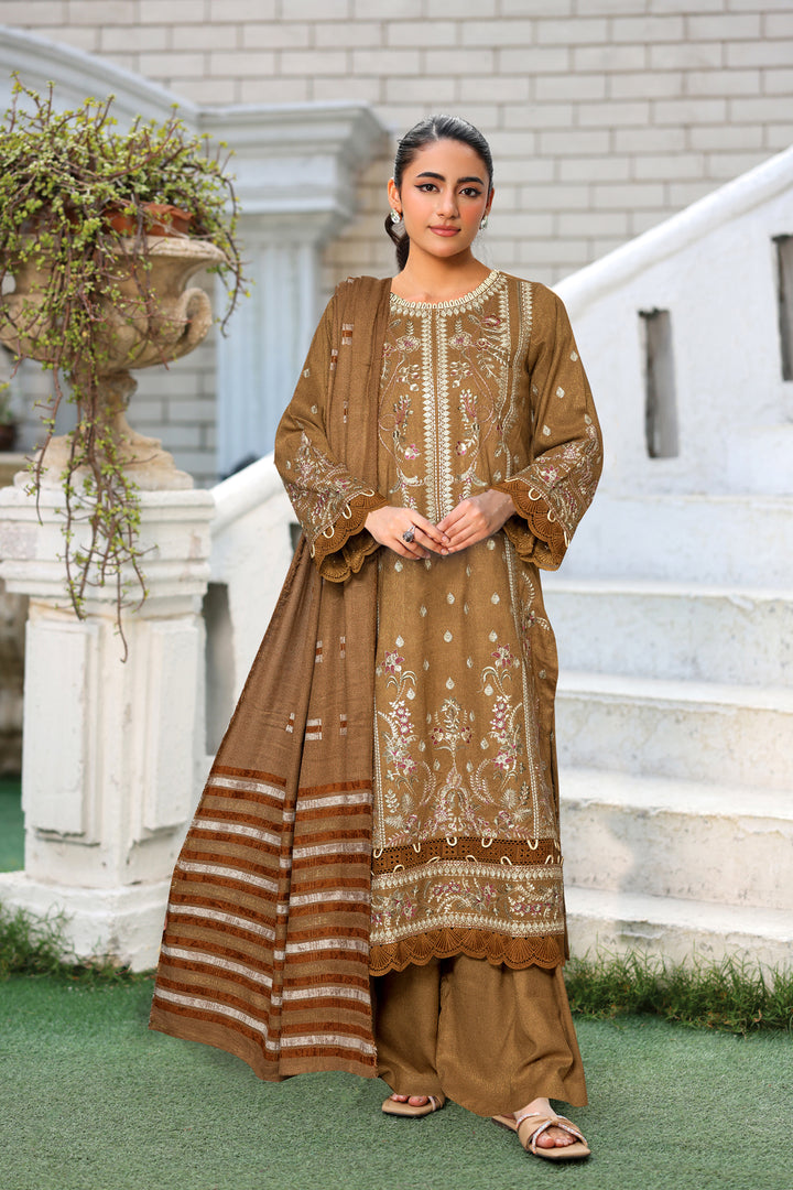 Description: Embroidered Fancy Peach Leather With Velvet Jacquard Shawl