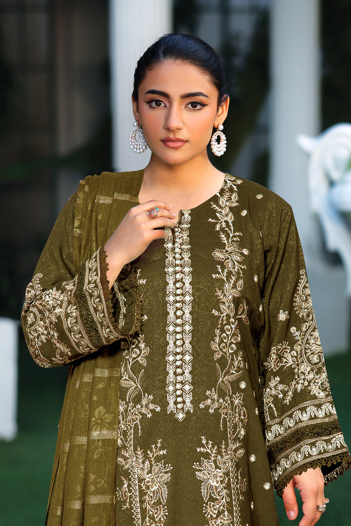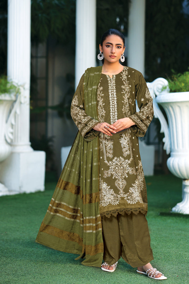 Description: Embroidered Fancy Peach Leather With Velvet Jacquard Shawl