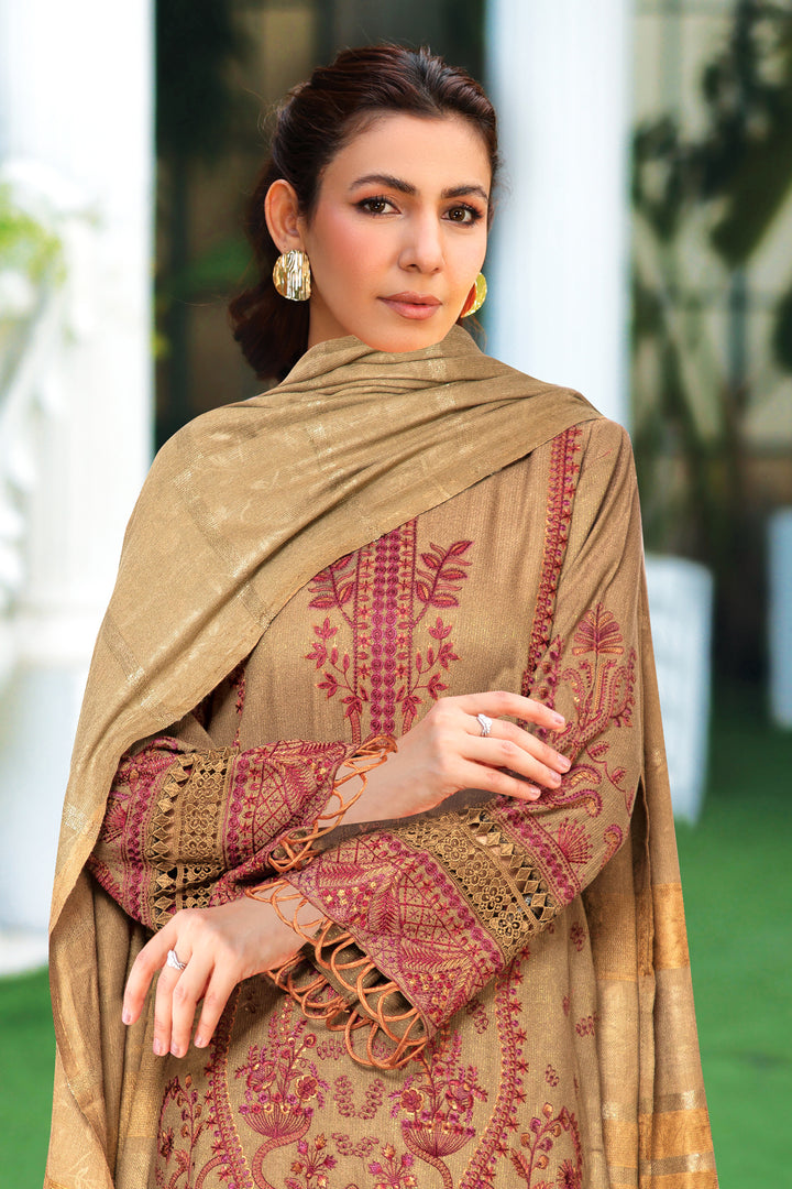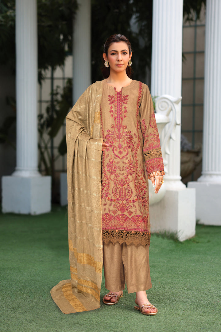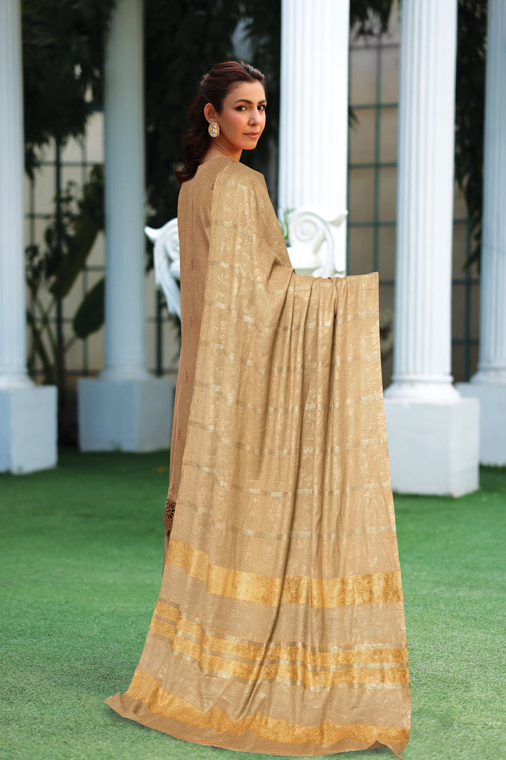 Description: Embroidered Fancy Peach Leather With Velvet Jacquard Shawl