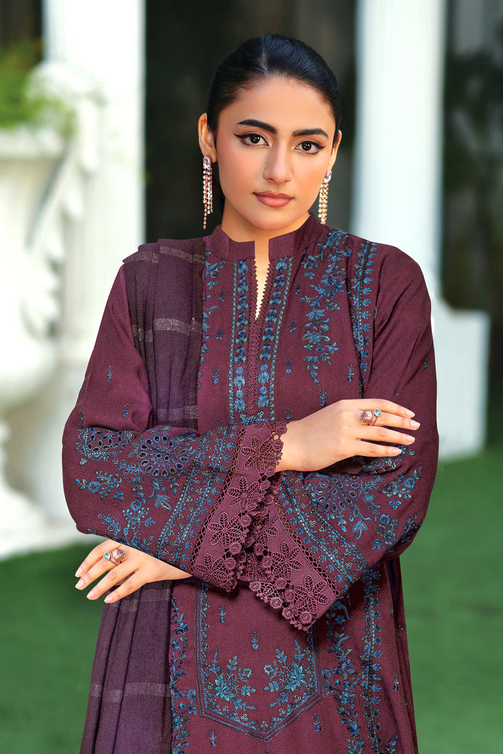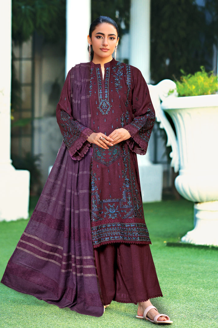 Description: Embroidered Fancy Peach Leather With Velvet Jacquard Shawl