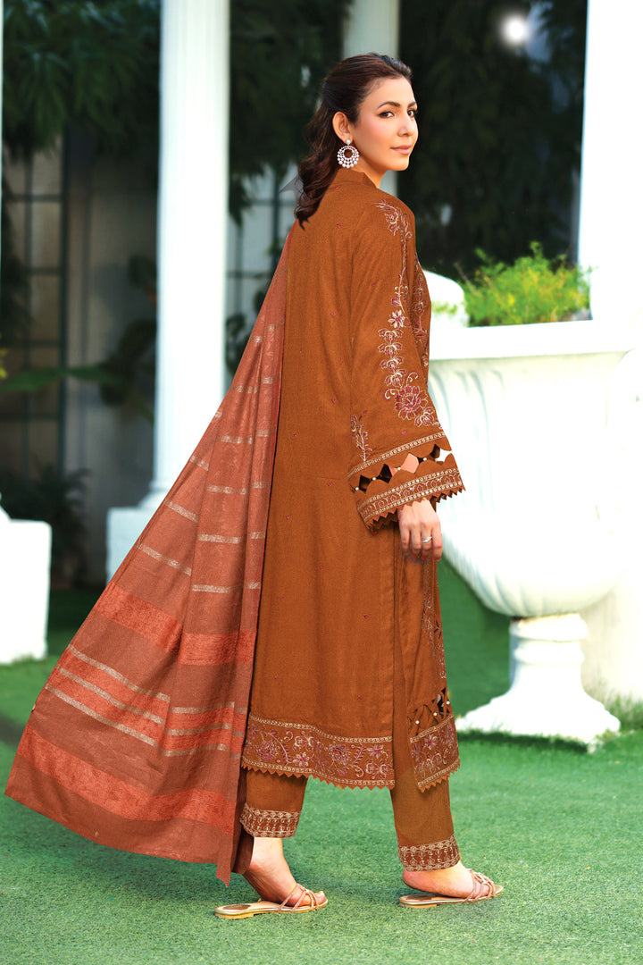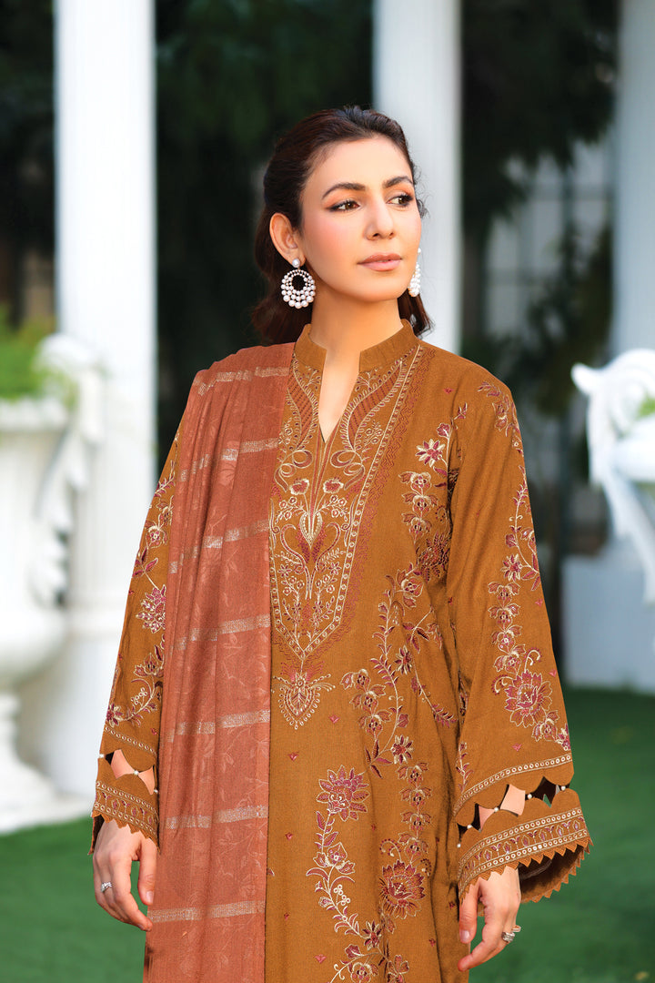 Description: Embroidered Fancy Peach Leather With Velvet Jacquard Shawl