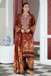 Description: Embroidered + Printed Peach Leather With Printed Shawl