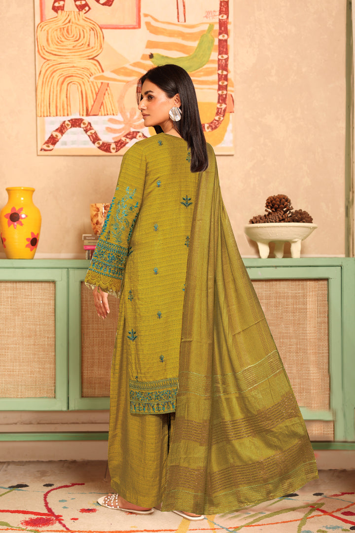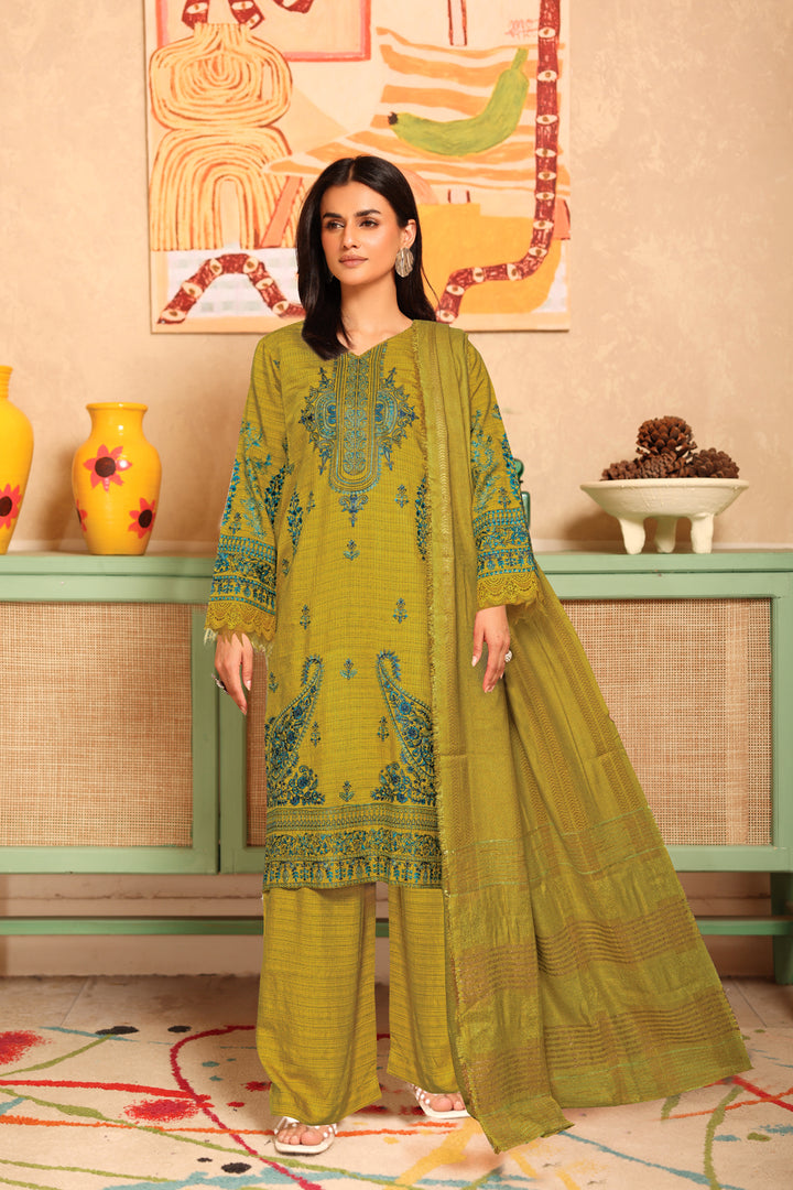 Description: Embroidered Fancy Peach Leather With Velvet Jacquard Shawl