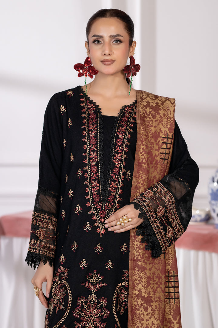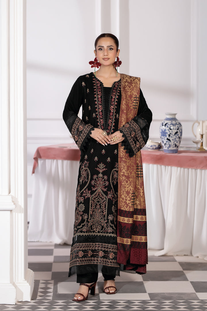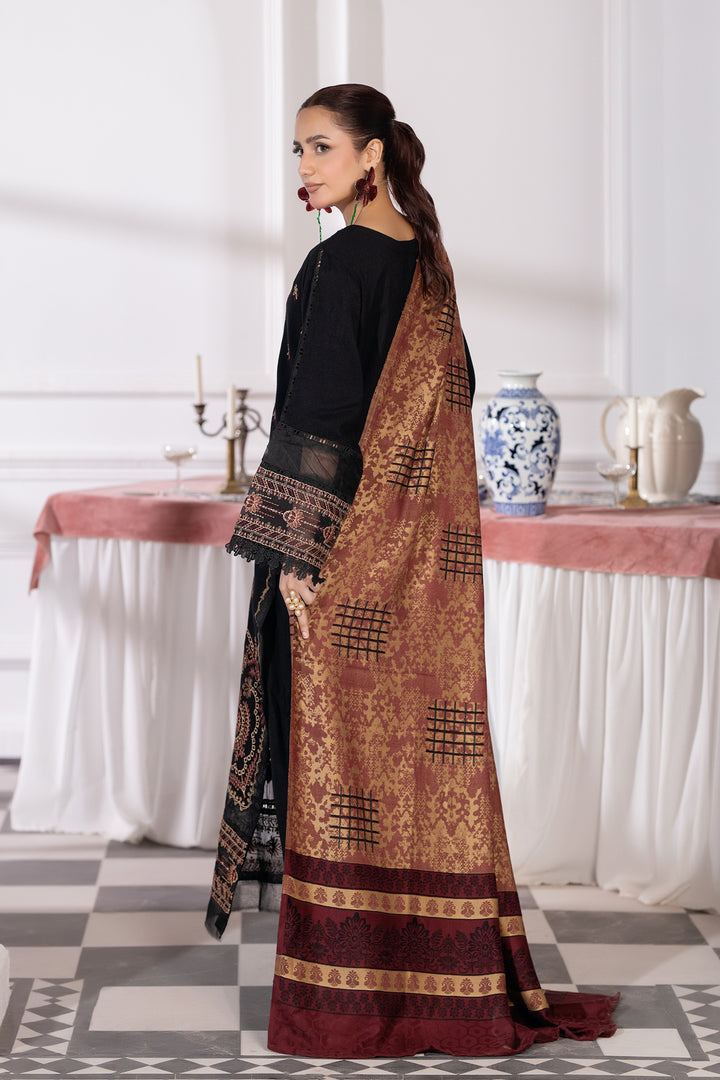 Description: Embroidered Peach Leather With Jacquard Wool Shawl