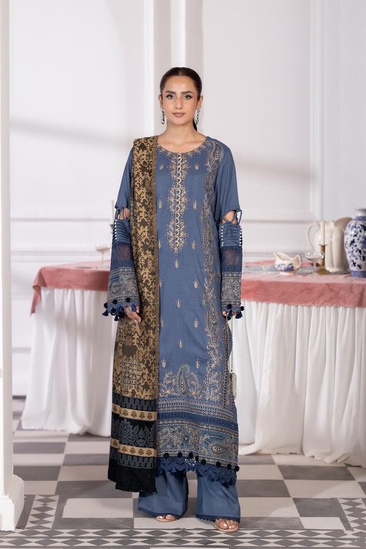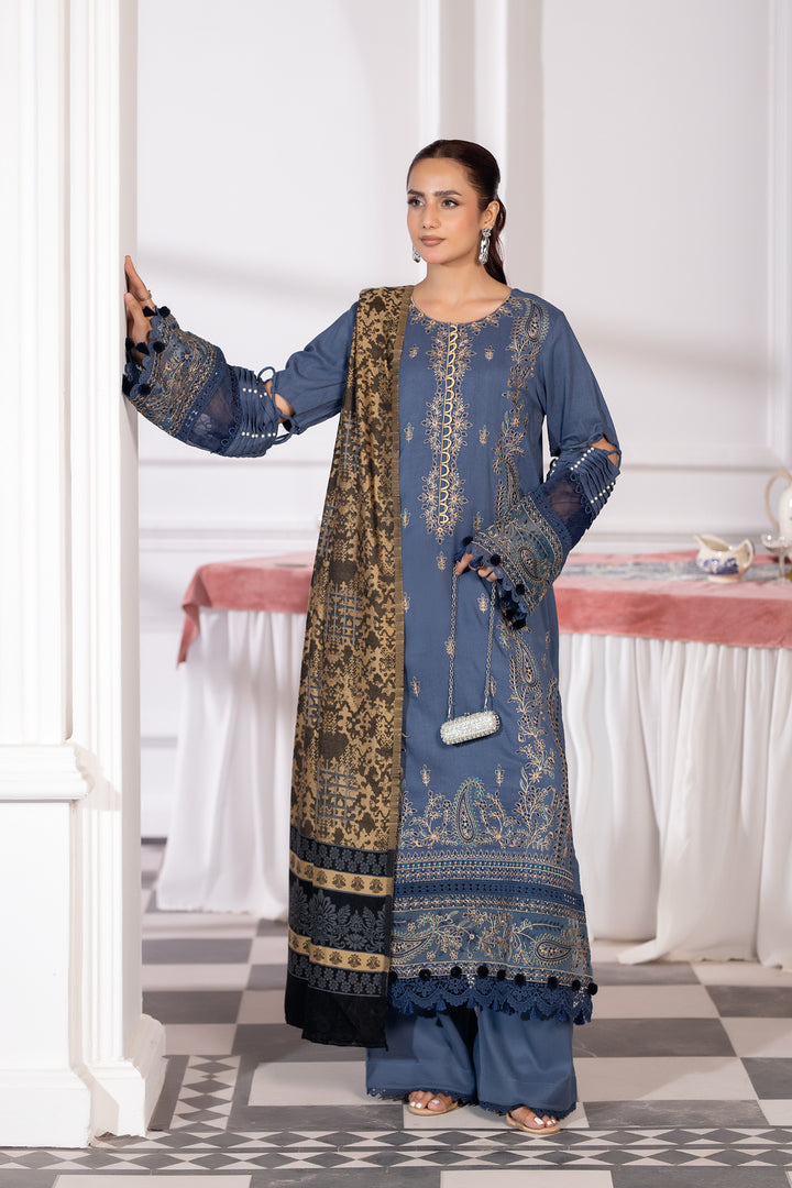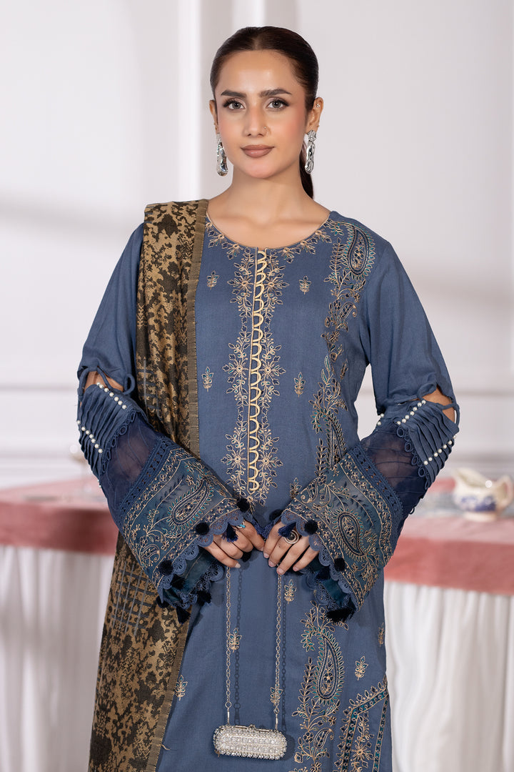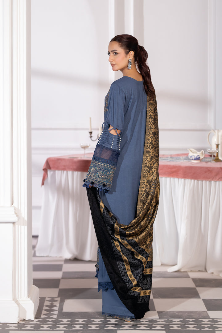 Description: Embroidered Peach Leather With Jacquard Wool Shawl