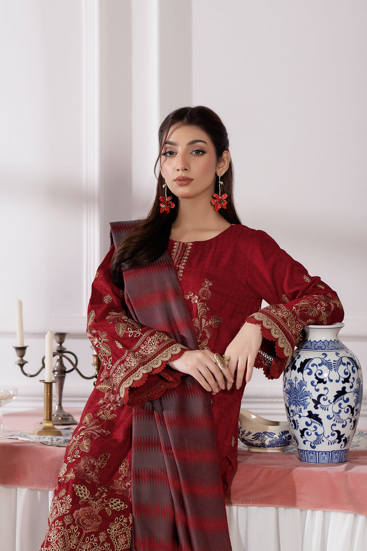 Description: Embroidered Winter Collection With Jacquard Shawl
